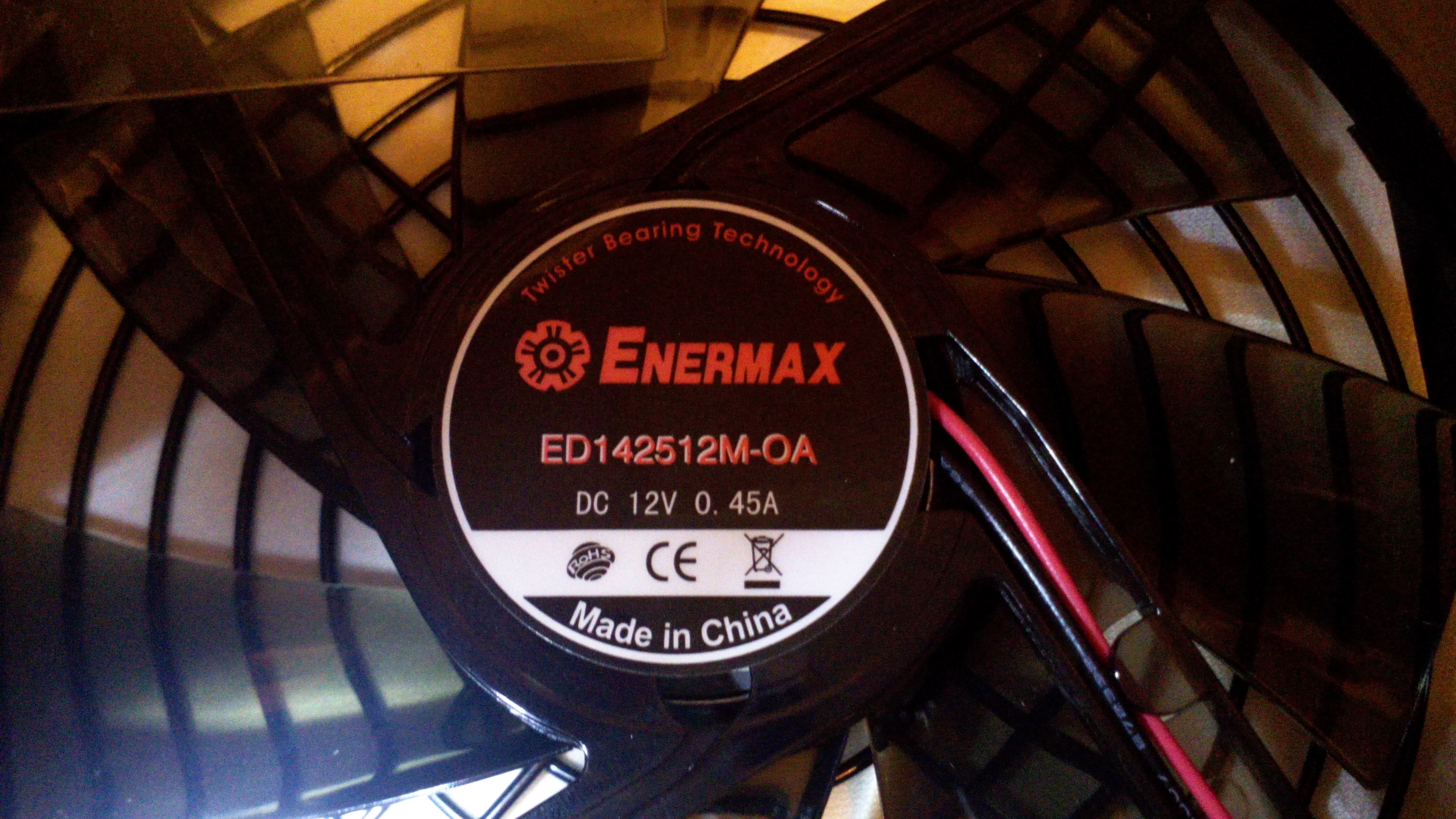 Enermax setzt beim Revolution X't auf ein hauseigenes 139mm Modell mit dem bewährten Twister-Lager. Die genaue Bezeichnung des Lüfters lautet „ED142512M-OA“ und besitzt eine Maximaldrehzahl von 2000 Rpm bei 0,45A maximaler Leistungsaufnahme.