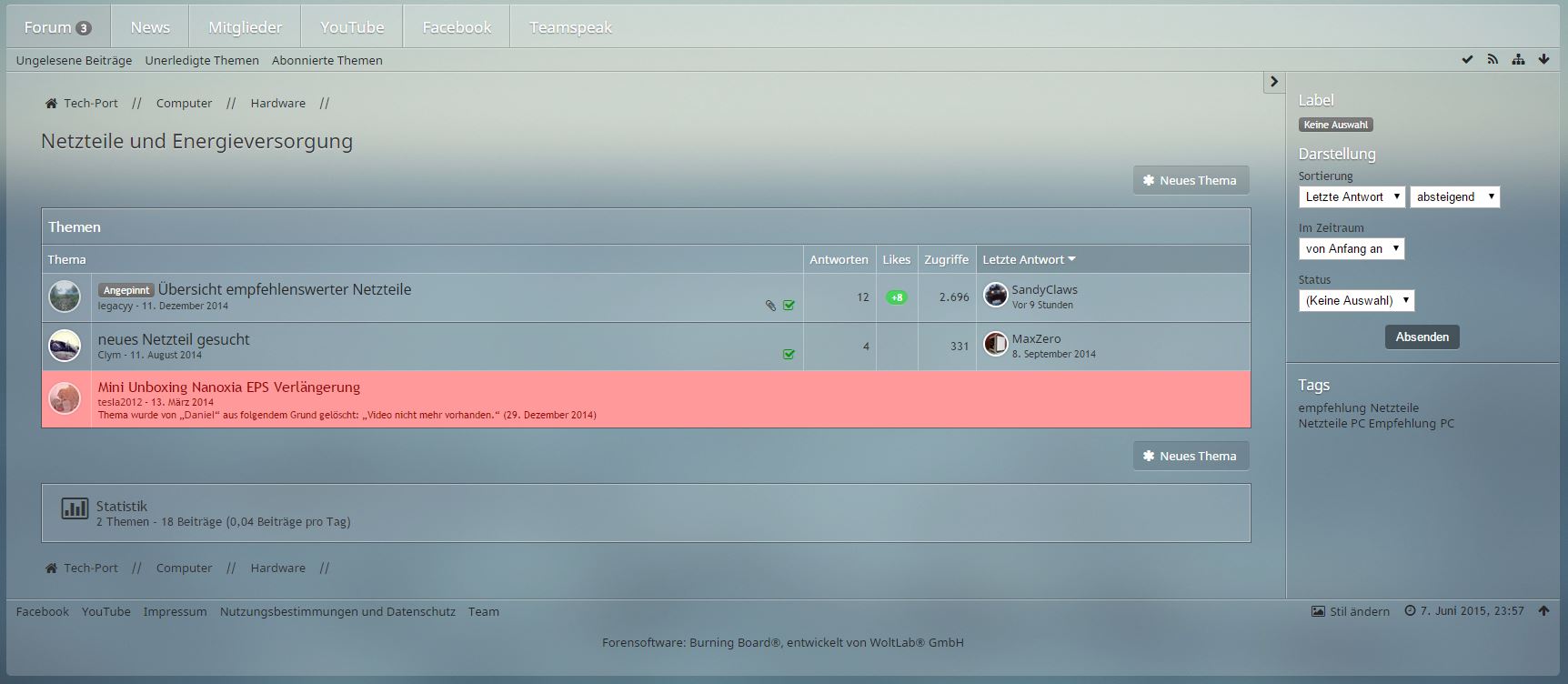 - Ein gelöschtes Thema bekommt offenbar den Hinweis dass und vom wem es wann gelöscht wurde, schöne Sache. Wie lange wird das Thema in dieser Form eigentlich angezeigt? Eventuell wäre es auch interessant das Thema trotzdem noch komplett lesen zu können.