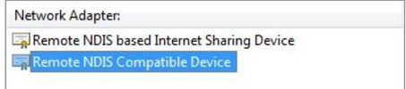 Geht im "Geräte-Manager" Rechtsklick auf den Remote NDIS based Internet Sharing Device Treiber und klickt Treibersoftware aktualisieren.