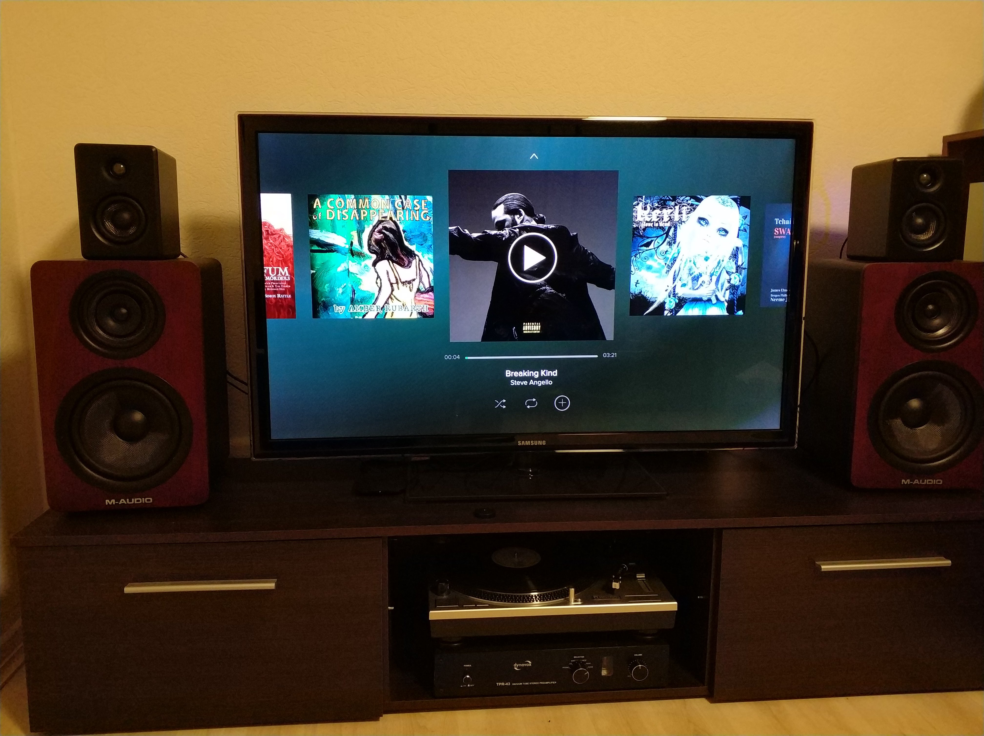 Nun hab ich sie heute man an meinen Fernsehr geklemmt. Aufgrund fehlendem Optischen Kabel, ging es nur per Klinge in die Glotze.