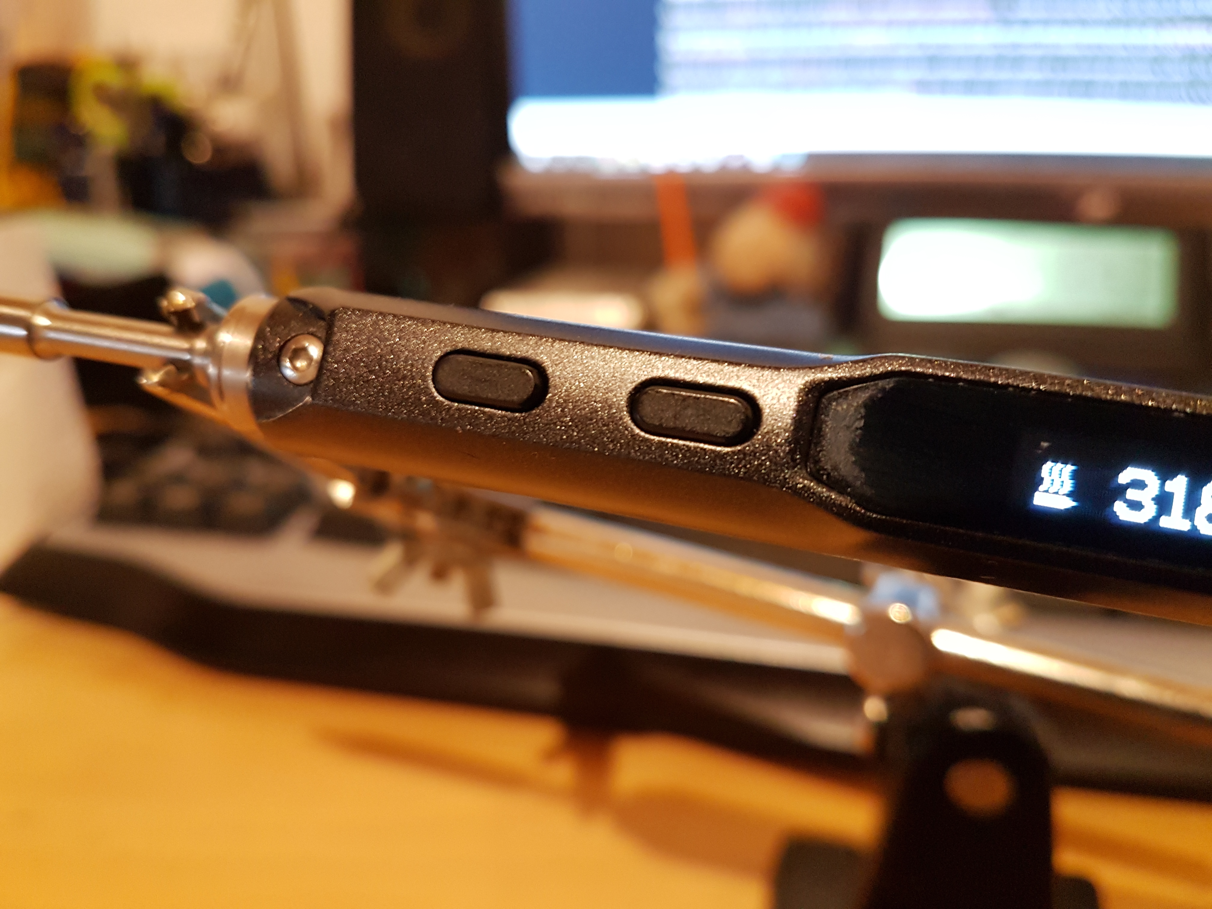 Auch hat der Lötkolben (OEM und Custom Firmware) einen Ruhemodus, heißt: Nach 2 Min Stilliegen drosselt er von 360 auf 150 Grad zurück, schont das Heizelement. In der Custom Firmware kann man aber auch die Ruhetemperatur, nach wie vielen Minuten einstellen.