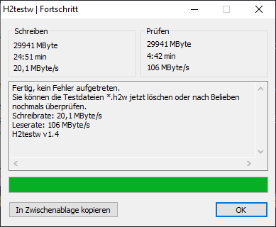Heute (21. Dezember), 41 Tage später, kam dieser nun an. Und so lebensmüde wie ich bin, hab ich desen auch direkt an meine Hauptkiste gesteckt und mit H2testw geprüft.