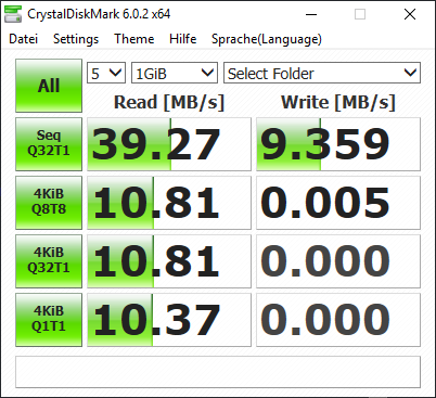 Ich habe also das gute, alte CrystalDiskMark 6 zur Hilfe gezogen und habe etwas andere Werte bekommen: