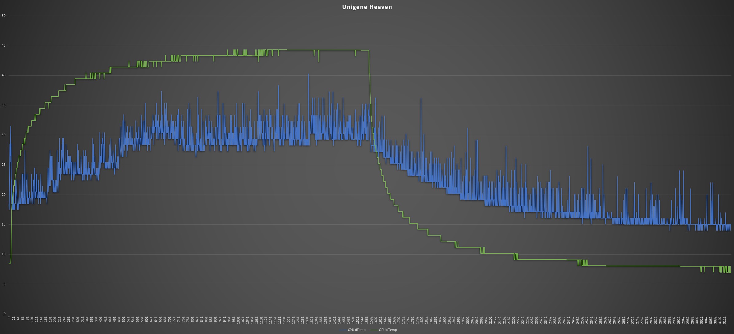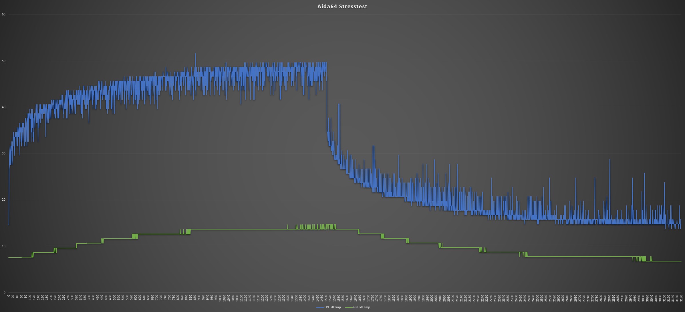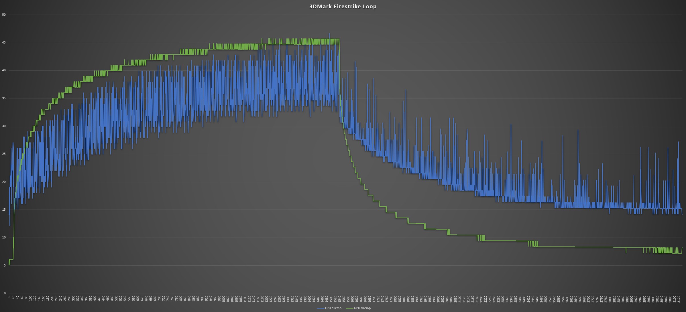 Die Umgebungstemperatur wurde ebenfalls alle 30 Minuten aufgezeichnet und wird abgezogen, damit unterschiedliche Umgebungstemperaturen das Endergebnis nicht verfälschen und den direkten Vergleich zwischen den Gehäusen ermöglichen. Alle Temperaturangaben (dCPU & dGPU) sind also Deltawerte, daher der Unterschied zur Raum-Temperatur und nicht die direkte Komponenten-Temperatur.